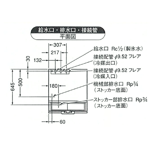 仕 様 【メーカー】ホシザキ 【型 番】CM-450ASK-SA 【電 源】三相200V 50/60Hz 【外形寸法】幅700×奥行790×高さ1790(mm) 【消費電力】1750/2120W 【製氷能力】約415/445kg/日(室温20℃,水温15℃) 約340/370kg/日(室温30℃,水温25℃) 【貯氷量】自然落下時貯氷量 約130kg 最大ストック量 約145kg 【消費水量】約0.42/0.45m3/日(室温20℃,水温15℃) 約0.35/0.38m3/日(室温30℃,水温25℃) 【圧縮機】全密閉形 【凝縮器】フィン・チューブ形強制空冷式 【製品質量】118kg 【配管口径】給水口 Rc1/2 排水口 Rp3/4×2 ※コンセントプラグはついておりません。